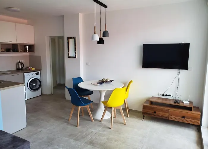 This 55 m² Obzor Tatyana Apartments The Wave is located next to North Beach and is equipped with a free car park and a tennis court. Guests can visit Central Beach, only 550 metres away or Ancient Kiln, in a 5-minute ride away from the 1-bedroom apartment.